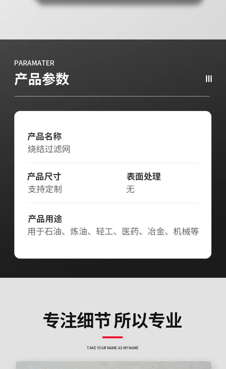 本产品采用先进的烧结技术,可根据客户需求定制不同孔径(微米级精度)、厚度、形状(如滤芯、滤筒、圆盘、板片等)及连接方式,满足各类严苛工况下的过滤需求。作为专业生产厂家,我们严格把控原材料与生产工艺,确保每一件烧结过滤网都具备卓越的过滤性能与长久的使用寿命。