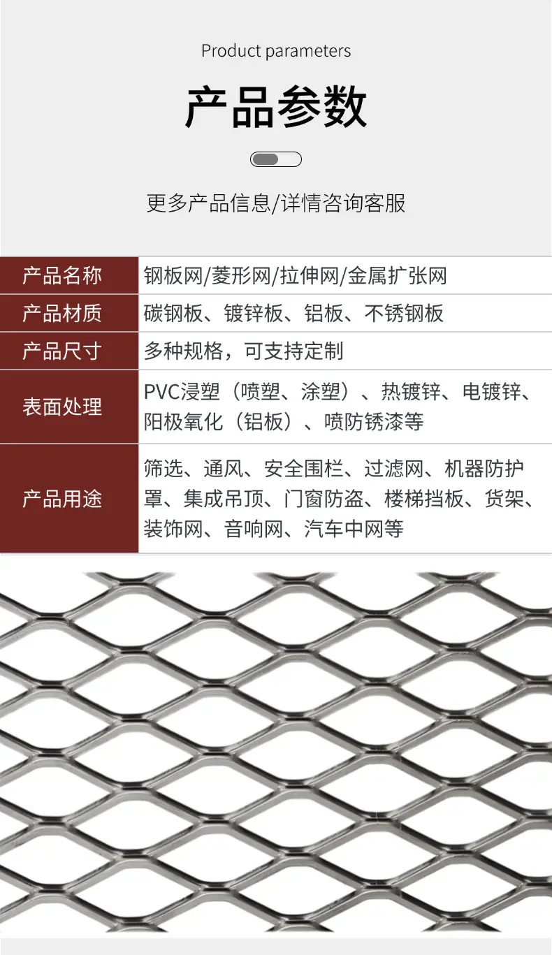 小孔铝拉伸板整体成型无焊点,结构稳定不易松动,表面可进行阳极氧化、粉末喷涂、电泳、氟碳喷涂等处理,耐腐蚀、不褪色,适合长期用于建筑装饰、设备防护、吊顶隔断、机械通风防护等领域。