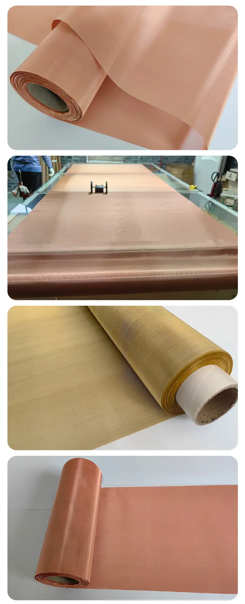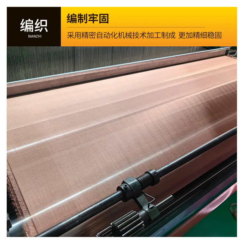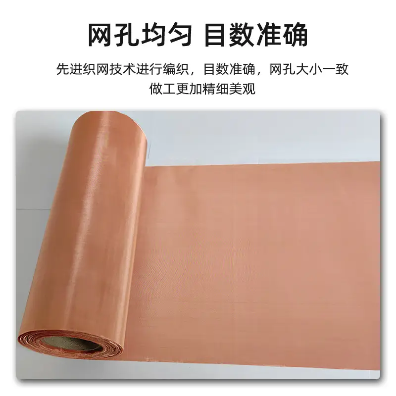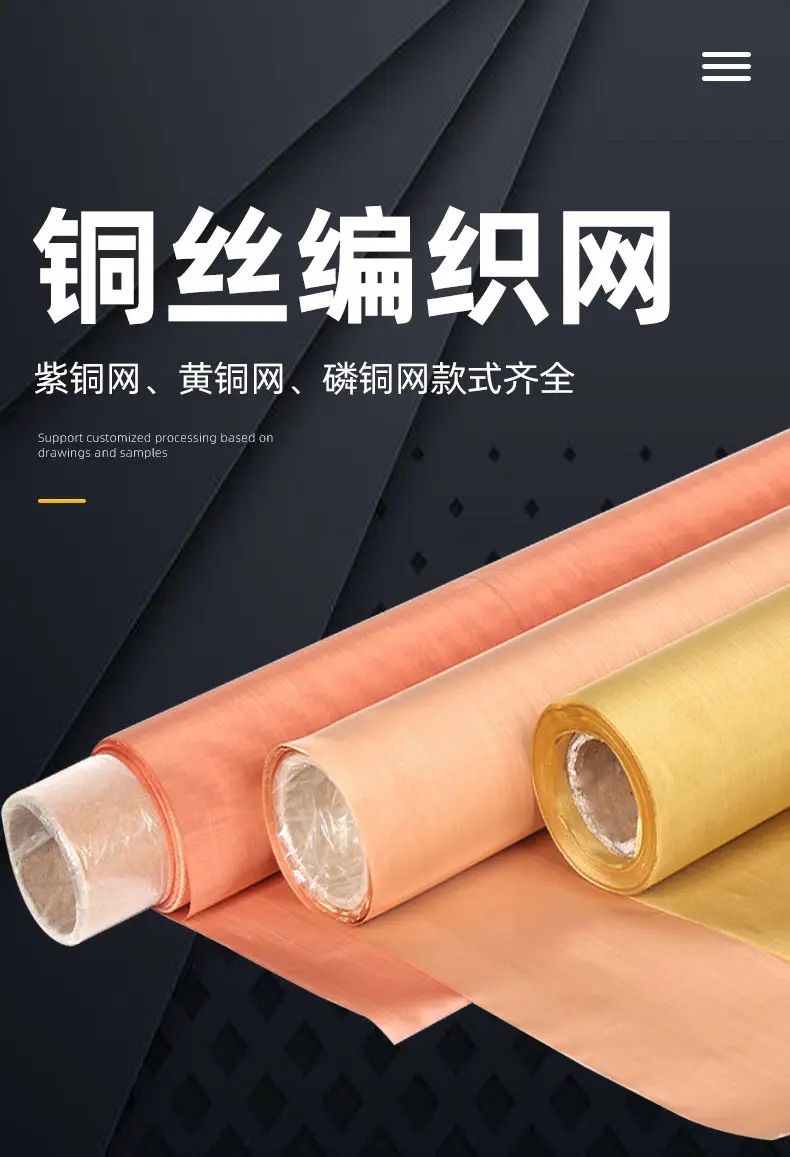 铜网是以优质黄铜、紫铜或磷铜为原料,通过平纹或斜纹编织工艺制成的金属网状制品。其核心特性包括高导电性、高导热性、无磁性、耐磨抗腐蚀,且具备优异的延展性与可加工性。根据材质与用途差异,铜网可分为黄铜网、紫铜网、磷铜网三大类,目数范围覆盖4目至500目,幅宽标准为0.914米/1米,支持定制化生产(最大宽度可达8米),满足工业、电子、建筑等多领域需求。