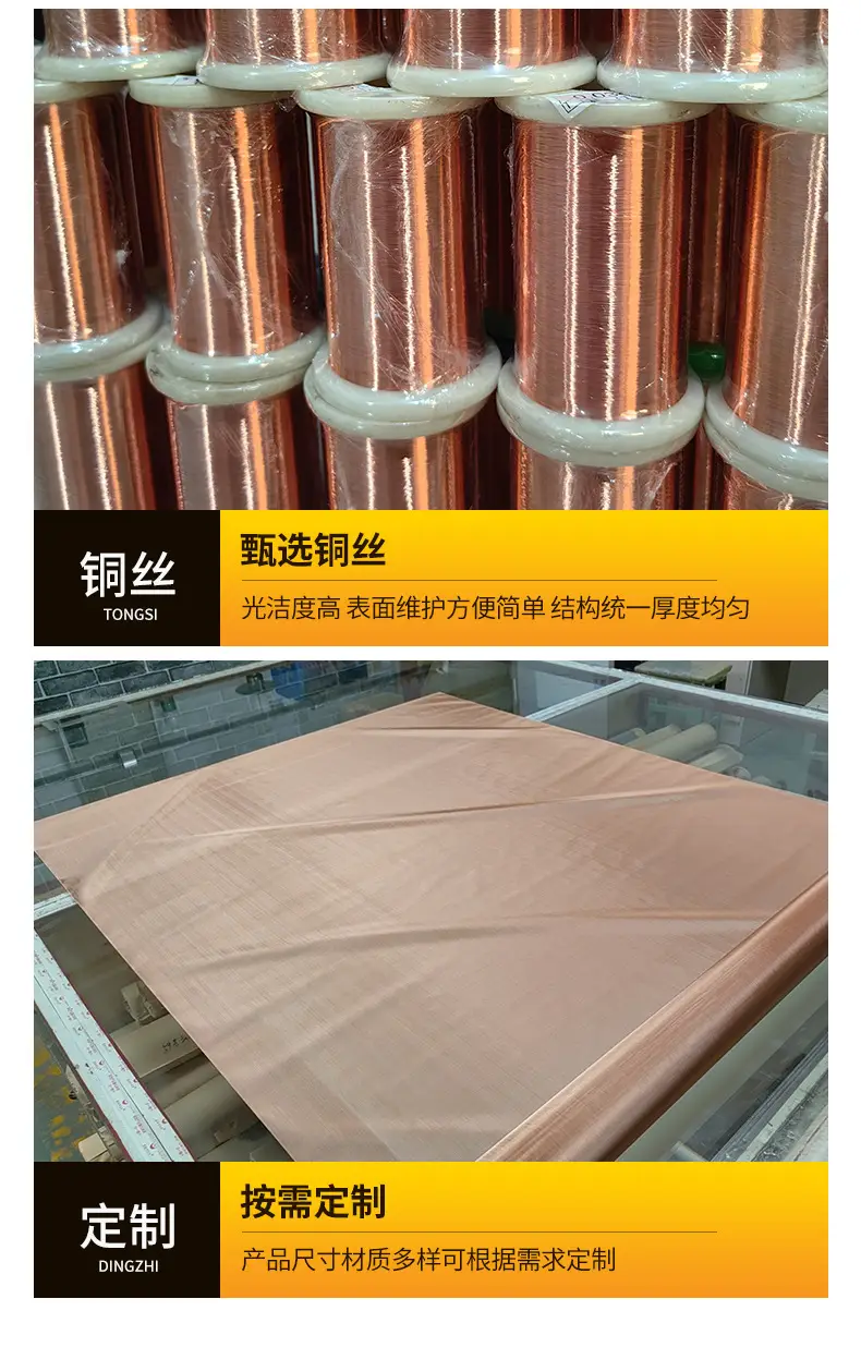 电磁屏蔽效能:450KHz≥55dB,50MHz≥85dB,1GHz≥65dB(紫铜网典型值)。